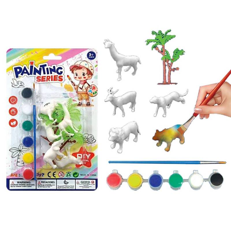 Σετ από 5 Γύψινα Ζωάκια, Νερομπογιές και Πινέλο, Κατάλληλα για Δωράκι σε Πάρτυ ή Γενέθλια.