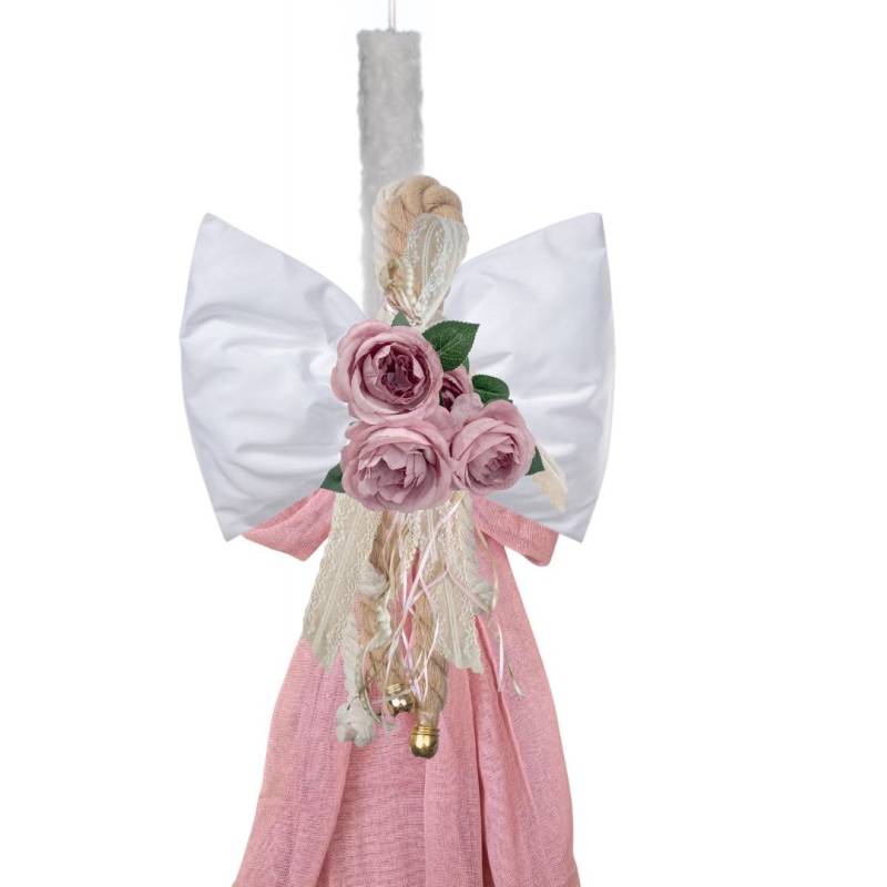 Περιγραφή Λαμπάδα βάπτισης στολισμένη με Λουλούδια, Υφάσματα και Κορδέλες σε Χρώμα
