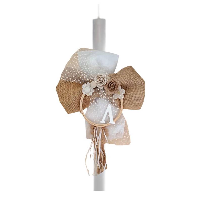 Λαμπάδα Στολισμένη Ρομαντικό με Μονόγραμμα
