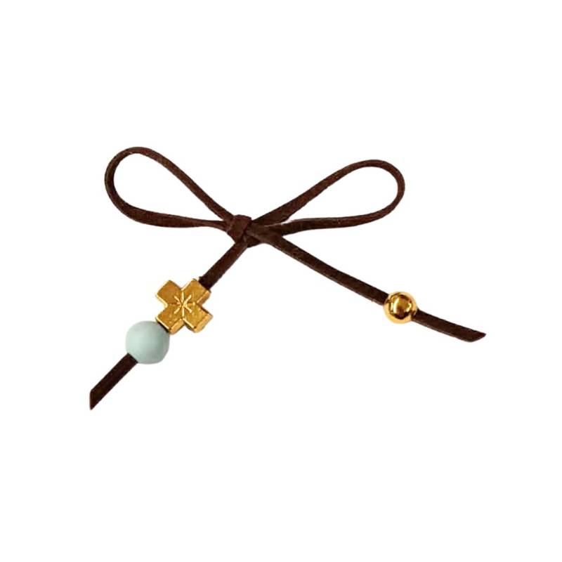 Μαρτυρικό Μπρελόκ με Κορδόνι Δερματίνης, Χρυσό Σταυρό και Χαντρούλα Σιελ. Περιλαμβάνει απλή καρφίτσα.