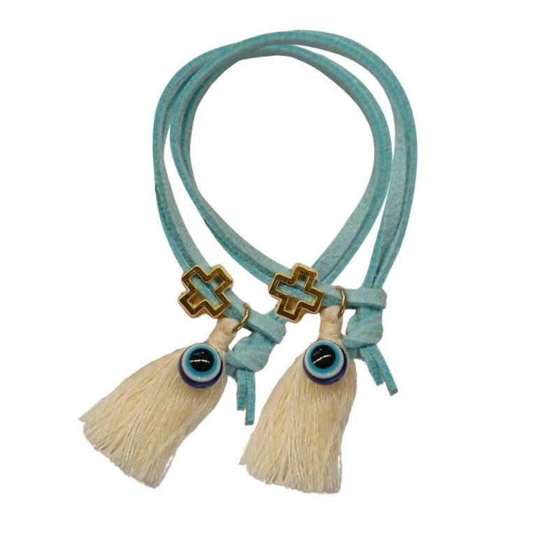 Περιγραφή Μαρτυρικό Μπρελόκ Βραχιόλι με Κορδόνι Δερματίνης, Χρυσό Σταυρό, Φούντα