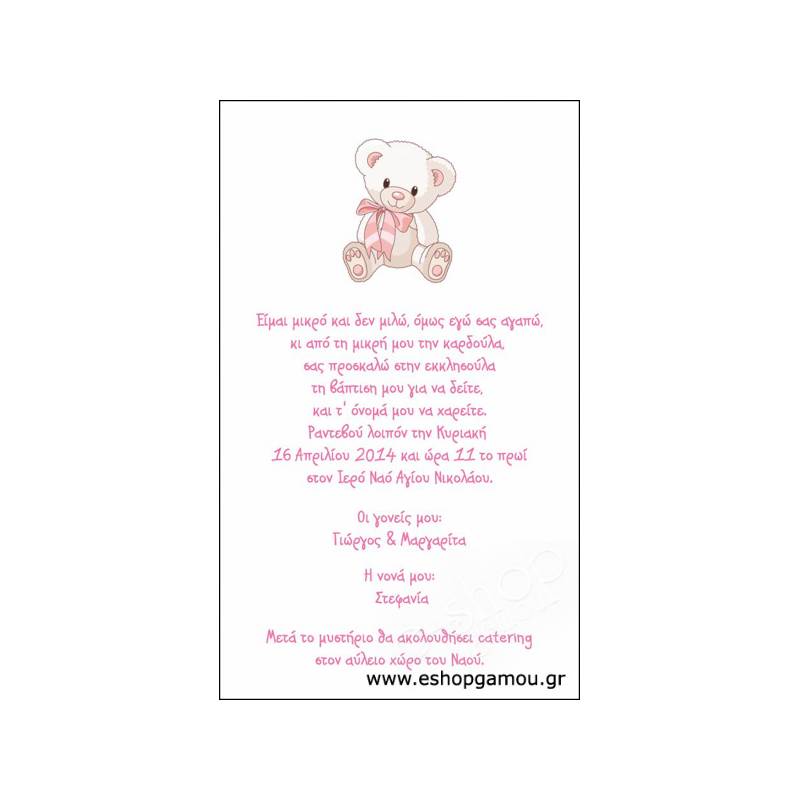 Μετά την παραγγελία μας στέλνετε το κείμενο του προσκλητηρίου με email στο info@eshopgamou.gr και σας στέλνουμε πίσω την μακέτα με το δικό σας κείμενο και στοιχεία.