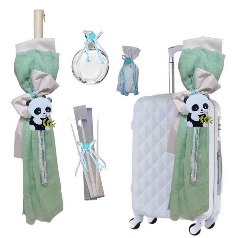 Το Σετ περιλαμβάνει Βαλίτσα Τρόλεϋ Στολισμένη, Λαμπάδα Βάπτισης και Σετ
