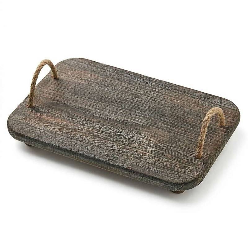 Ξύλινος Δίσκος Ορθογώνιος με Πόδια Σκούρος 38x25εκ.