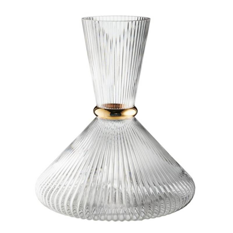 Γυάλινη Καράφα Ανάγλυφη με Χρυσό Πώμα Κύλινδρο.