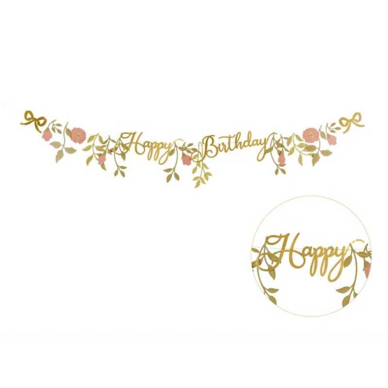 Διακοσμητική Γιρλάντα Χρυσή Στολισμένη με Λουλούδια χάρτινα.