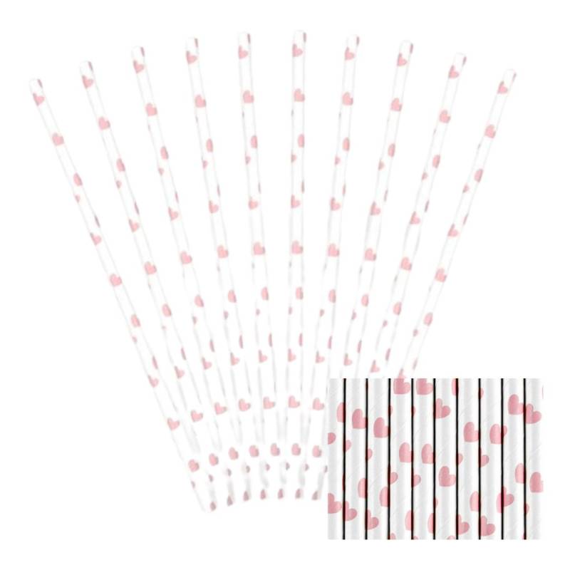 Καλαμάκια Χάρτινα Ροζ Καρδούλες (10τεμ.)