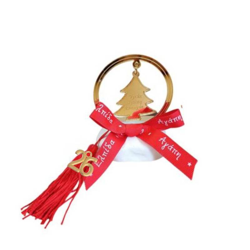 Γούρι Δεντράκι Ευχές Ακρυλικό 2026 Κόκκινη Φούντα