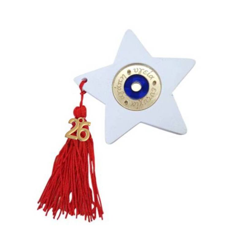 Γούρι Αστέρι Μάτι Ευχές "26" με κόκκινη Φούντα