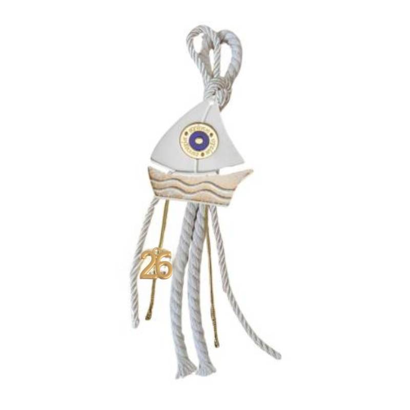 Περιγραφή Γούρι καράβι κεραμικό με μάτι ευχές "26".