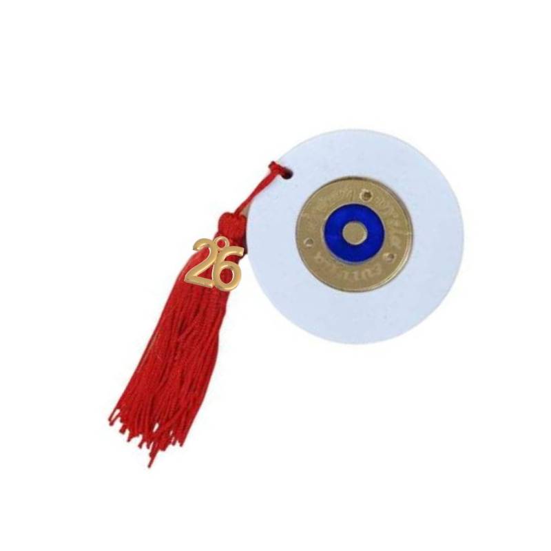 Γούρι Μάτι Ευχές "26" με κόκκινη Φούντα