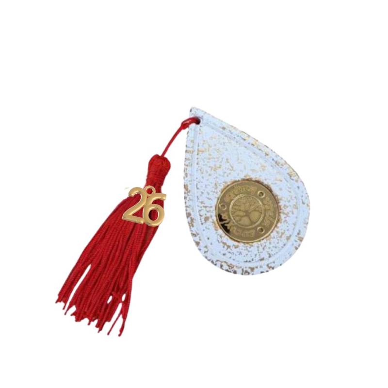 Γούρι Μάτι Χρυσό Ευχές "26" με κόκκινη Φούντα