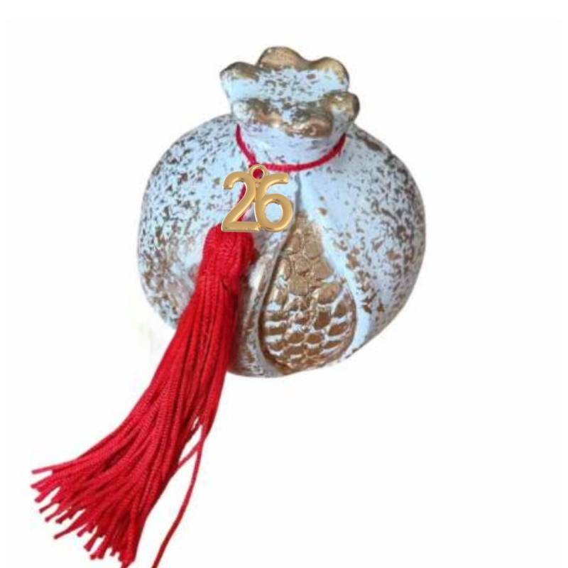 Γούρι Ρόδι Κεραμικό Χρυσά Σποράκια με Φούντα "26"