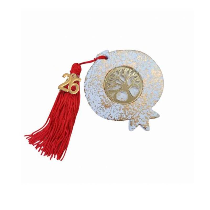 Γούρι Κεραμικό Ρόδι μει Δέντρο με ευχές από plexiglass καθρέπτη με μεταλλικό "26".
