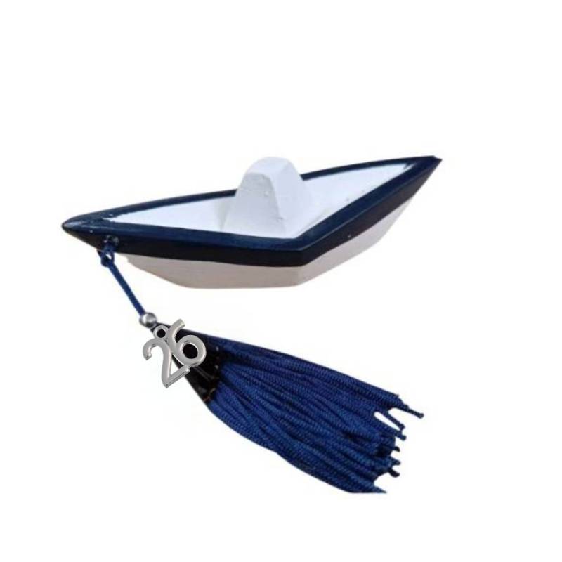 Γούρι με Κεραμικό Καραβάκι, Φουντίτσα Μπλέ και Ημερομηνία.