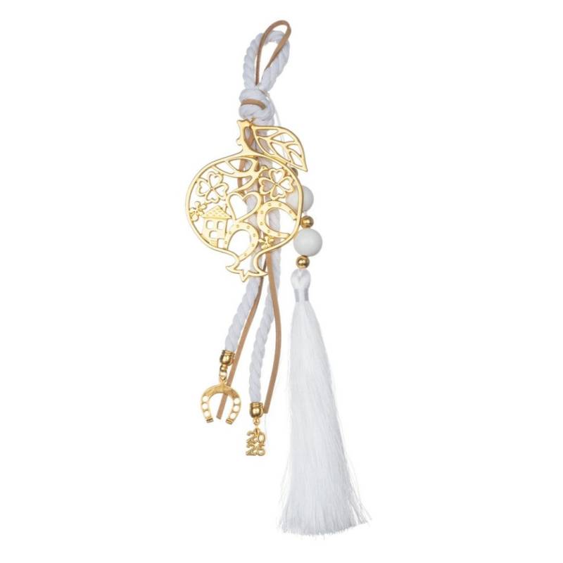 Γούρι με Ρόδι Διάτρητο και Φούντα Λευκή