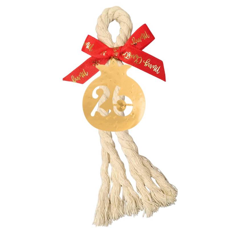Περιγραφή Γούρι Μεταλλικό Ρόδι με Διάτρητο 26, Χοντρό Βαμβακερό Κορδόνι και Κορδέλα