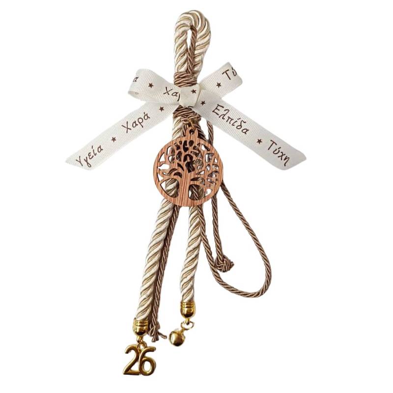 Γούρι Δέντρο Ζωής Ξύλινο και Κορδέλα με Ευχές