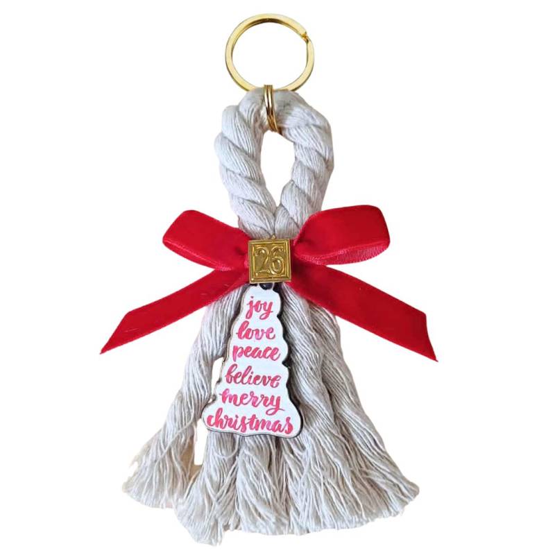 Περιγραφή Γούρι από χοντρό Κορδόνι Βαμβακερό, Βελούδινη Κορδέλα και Ξύλινο Ταμπελάκι