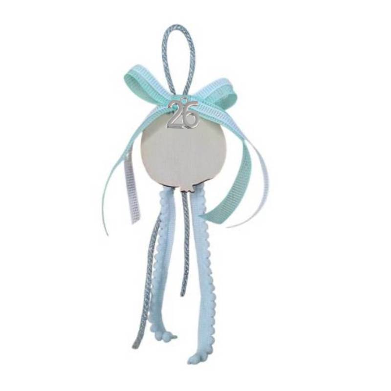 Σε περίπτωση που θέλετε ποσότητα μεγαλύτερη των 1, η διαθεσιμότητα είναι: Διαθέσιμο σε 1 έως 5 εργάσιμες ημέρες Περιγραφή Γούρι με Ρόδι σε Φυσικό Ξύλο και Κορδέλες σε Βεραμάν Ασημί