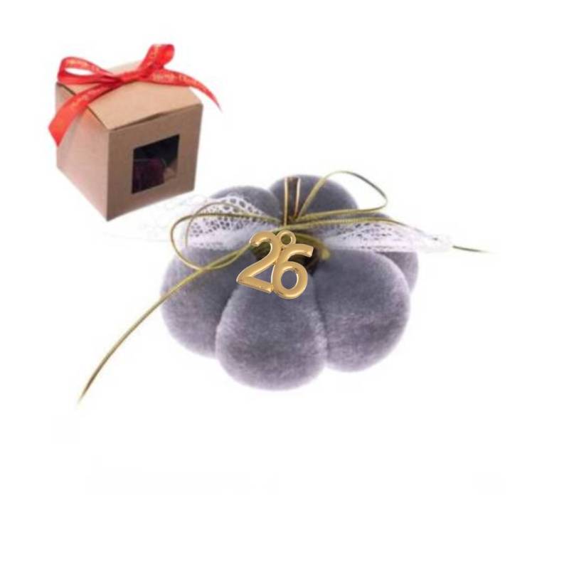 Περιγραφή Κολοκύθα βελούδινη Γκρι με μεταλλικό "26" σε κουτί.