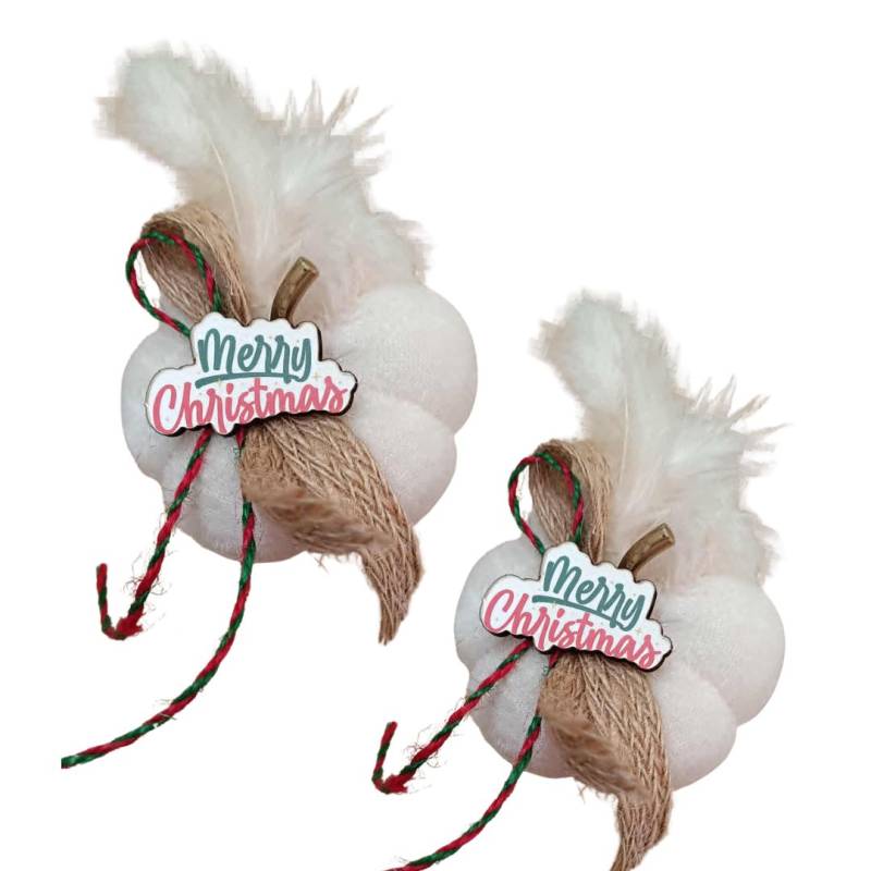 Γούρι Κολοκύθα Ιβουάρ Πούπουλο Merry Christmas