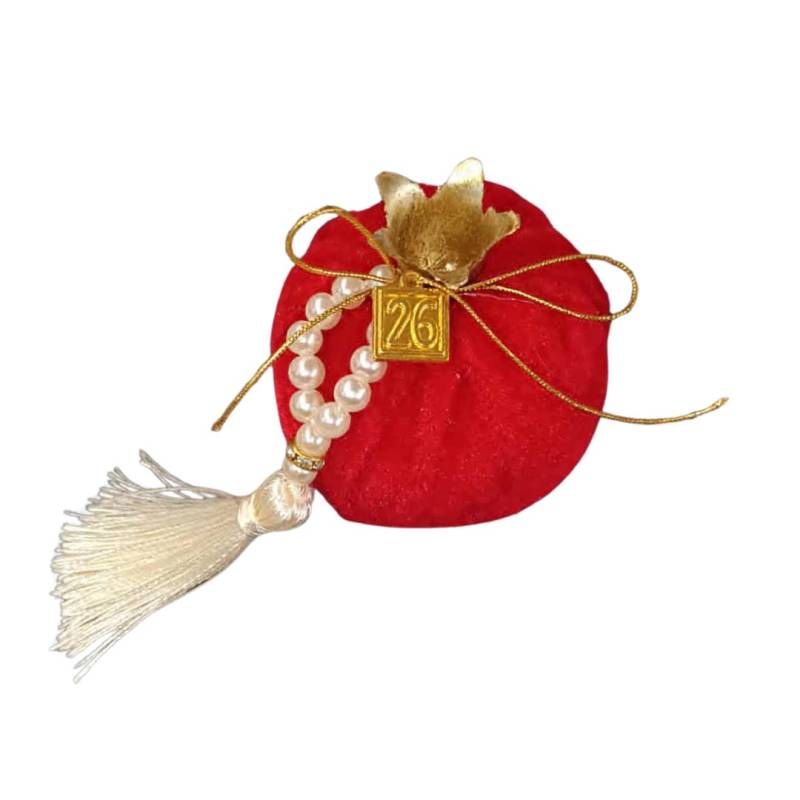 Γούρι Ρόδι Βελουτέ Κόκκινο με Πέρλες