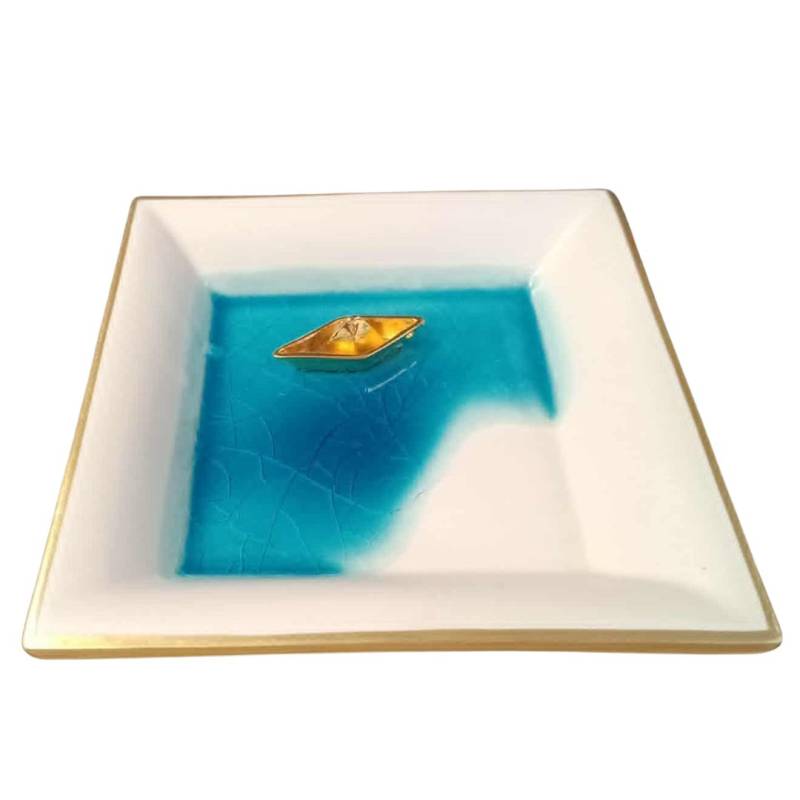 Σε περίπτωση που θέλετε ποσότητα μεγαλύτερη των 2, η διαθεσιμότητα είναι: Καταργήθηκε Περιγραφή Κεραμικό Πιάτο Διακοσμητικό με Χρυσή Βαρκούλα και Γαλάζιο Γυαλί.