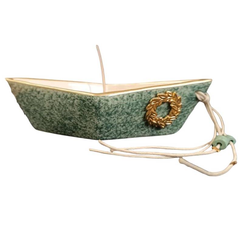 Κεραμική Βαρκούλα με Κερί και Στεφανάκι Λαδί 16Χ4εκ.