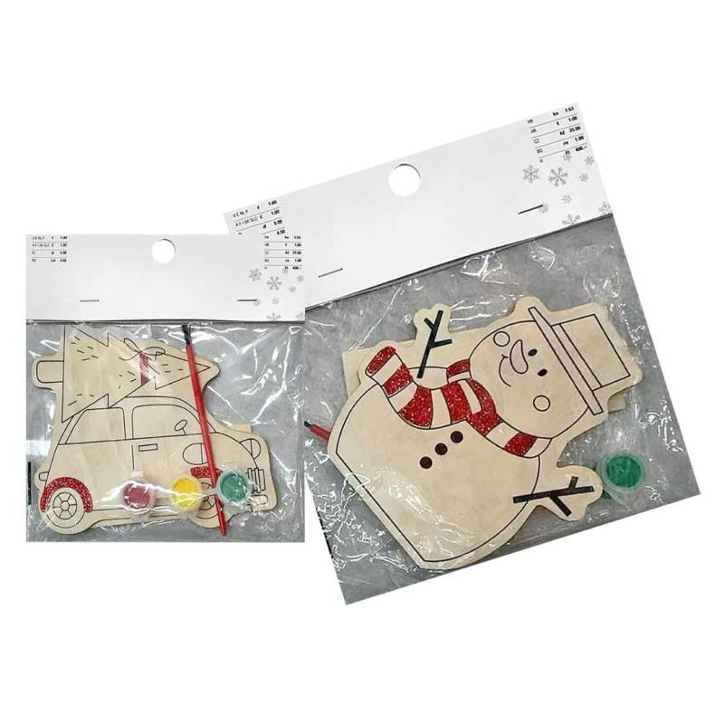 Σετ από Ξύλινο Στολίδι σε Φυσικό Ξύλο που συνοδεύεται από μπογιές και πινελάκι. Φανταστική Ιδέα για Δωράκι σε Πάρτυ, Γενέθλια κλπ