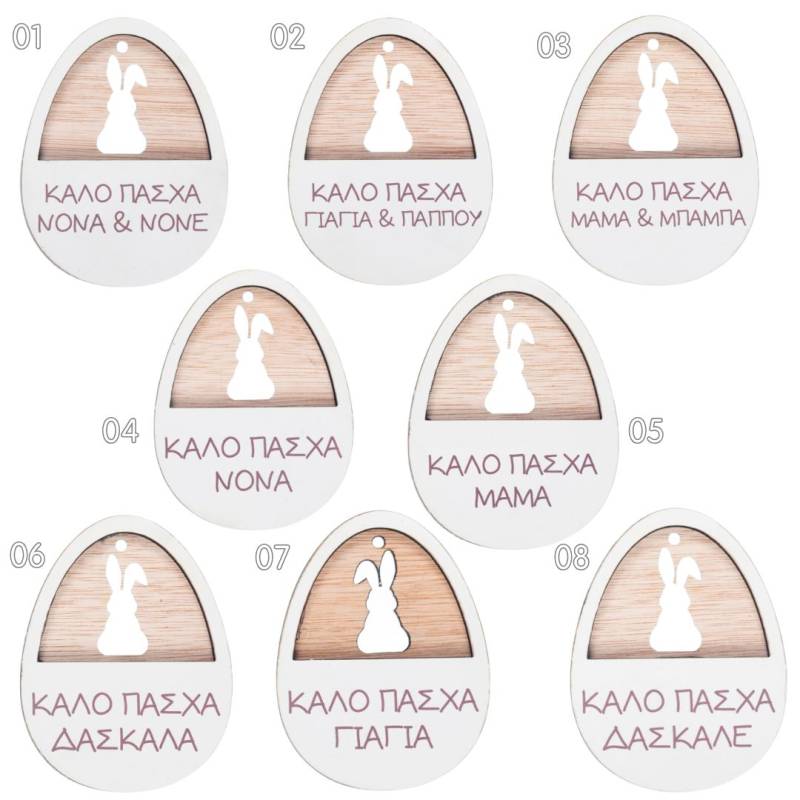 Ξύλινο Αυγό με Λαγουδάκι και Αφιέρωση 8Χ6εκ. Νέο