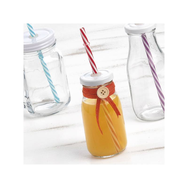 Μπουκαλάκια Γυάλινα με Μεταλλικό Καπάκι και Πολύχρωμα Καλαμάκια.