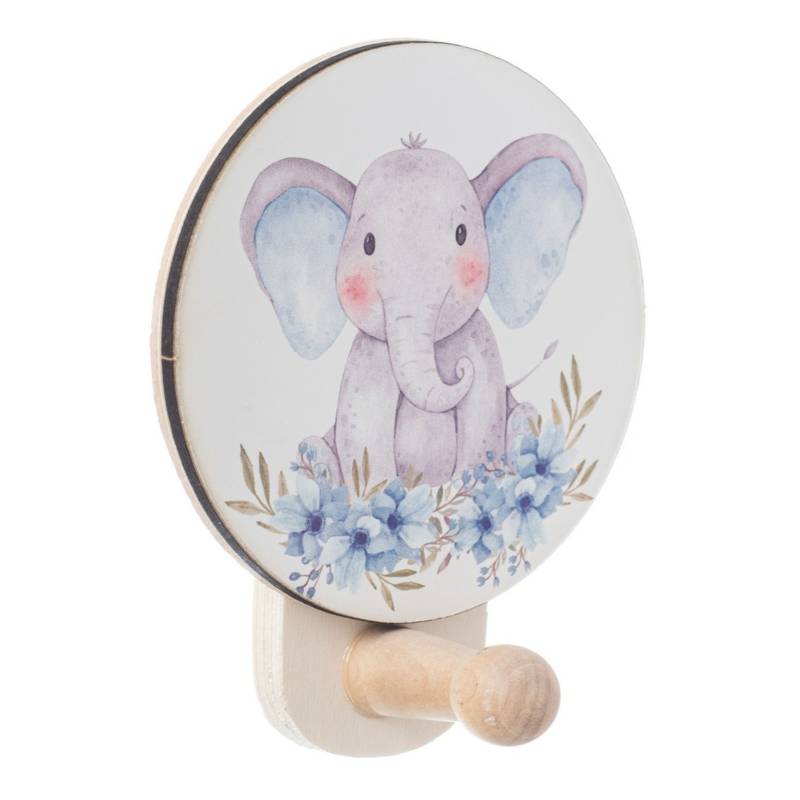 Ξύλινη διακοσμητική στρογγυλή κρεμάστρα τοίχου με τυπωμένο Ελεφαντάκι.