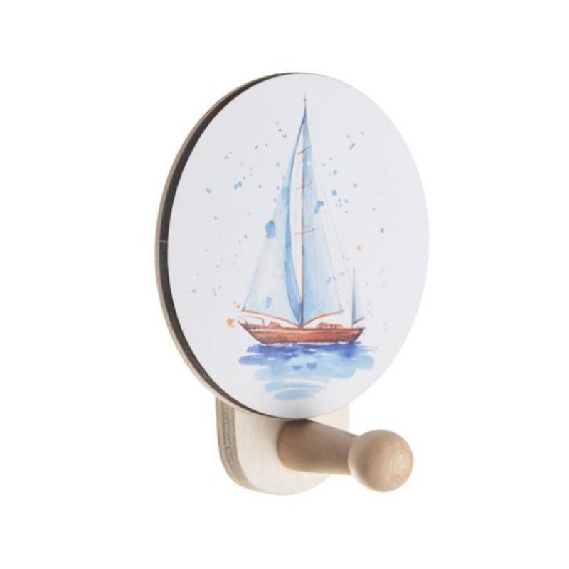 Περιγραφή Ξύλινη διακοσμητική στρογγυλή κρεμάστρα τοίχου με τυπωμένο