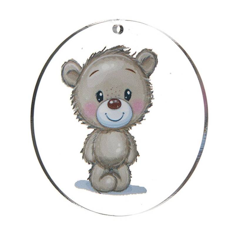 Plexiglass Στολίδι Στρόγγυλο με τυπωμένο Αρκουδάκι. Έχει τρύπα για εύκολο στολισμό.