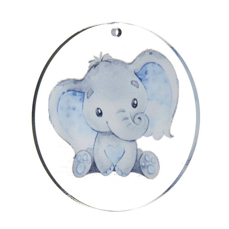 Περιγραφή Plexiglass Στολίδι Στρόγγυλο με τυπωμένο Ελεφαντάκι. Έχει τρύπα για