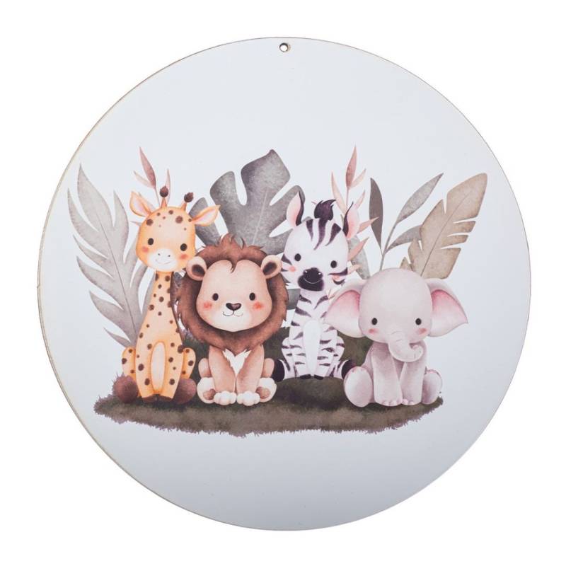 Περιγραφή Ξύλινο Διακοσμητικό με τυπωμένα τα Ζωφάκια Ζούγκλας κατάλληλο για Στολισμό